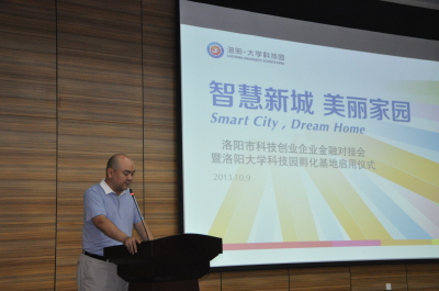 10月9日上午,洛陽(yáng)市科技創(chuàng)業(yè)企業(yè)金融對(duì)接會(huì)暨洛陽(yáng)大學(xué)科技園孵化基地啟用儀式在洛陽(yáng)大學(xué)科技園新落成孵化基地隆重舉行。